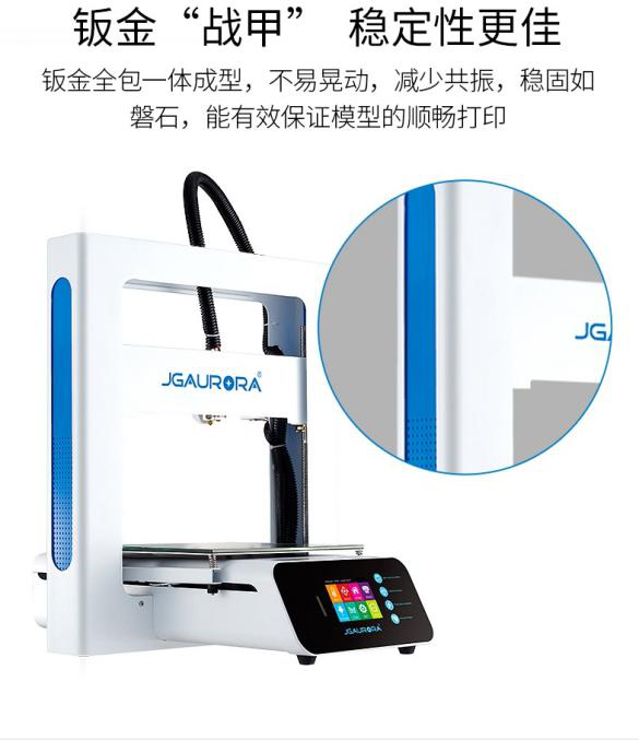 3D打印機是一種新興制造工具,而工具本身的根本要求是能經受長期使用、能保證穩定的產出質量。在市場上桌面級3D打印機不??刂瞥杀緯r,極光爾沃仍然堅持質量第一的標準,機身采用了一體鈑金制造,9kg的全重是品質的直觀表現。潔白機身與品牌藍調點綴,造就大氣的高雅外觀。多功能觸控系統操作便捷。干練的造型體現出極簡的科技最終追求。專業化的工業外觀設計,傳遞出有情感,有品味,科技向上的品牌態度。