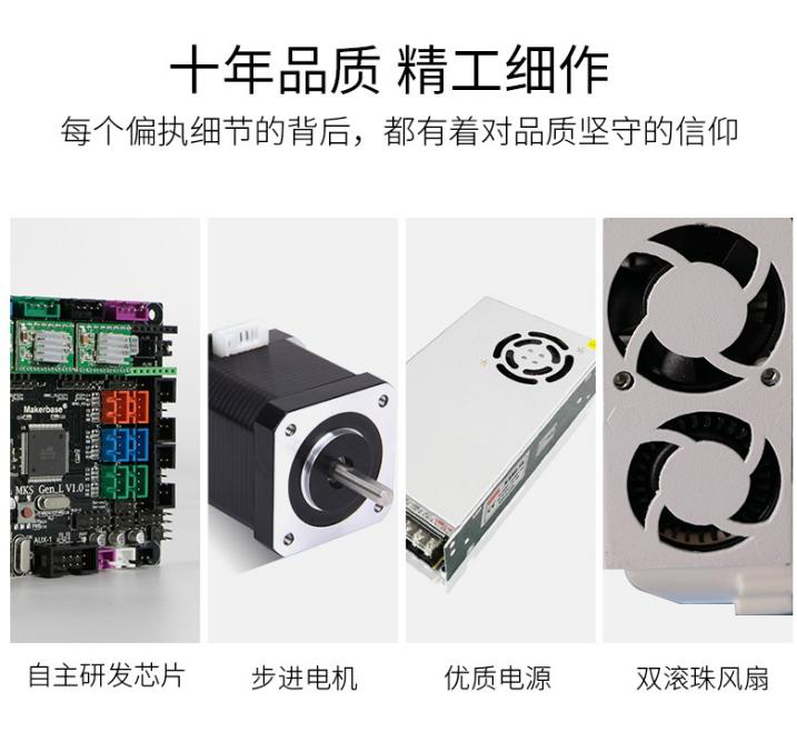3D打印機操作不易,從入門到棄坑也常有發生。A3S采用多項技術為用戶解決使用煩憂——斷料檢測、斷電續打、新一代精控技術、智輔調平,為用戶便捷使用保駕護航。