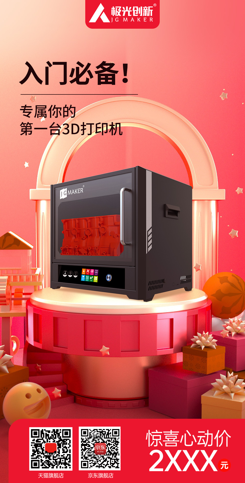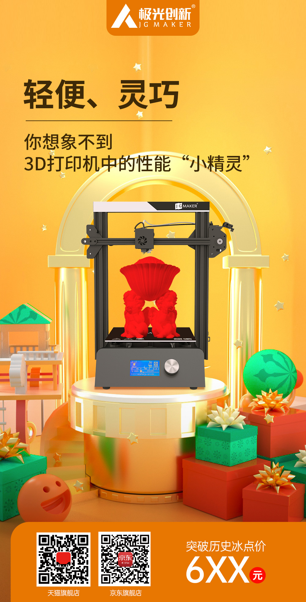 當(dāng)然,除了以上提到的機(jī)型,你還可以在極光創(chuàng)新天貓或京東旗艦店選購(gòu)其它類型的3D打印機(jī)相關(guān)產(chǎn)品。時(shí)值雙十一購(gòu)物節(jié)到來(lái)之際,極光創(chuàng)新旗下多款爆款產(chǎn)品折扣力度驚人,購(gòu)買同時(shí)還有多種好禮相送,對(duì)于近期有購(gòu)機(jī)計(jì)劃的朋友千萬(wàn)不要錯(cuò)過(guò)此次的雙十一購(gòu)物狂歡節(jié)。