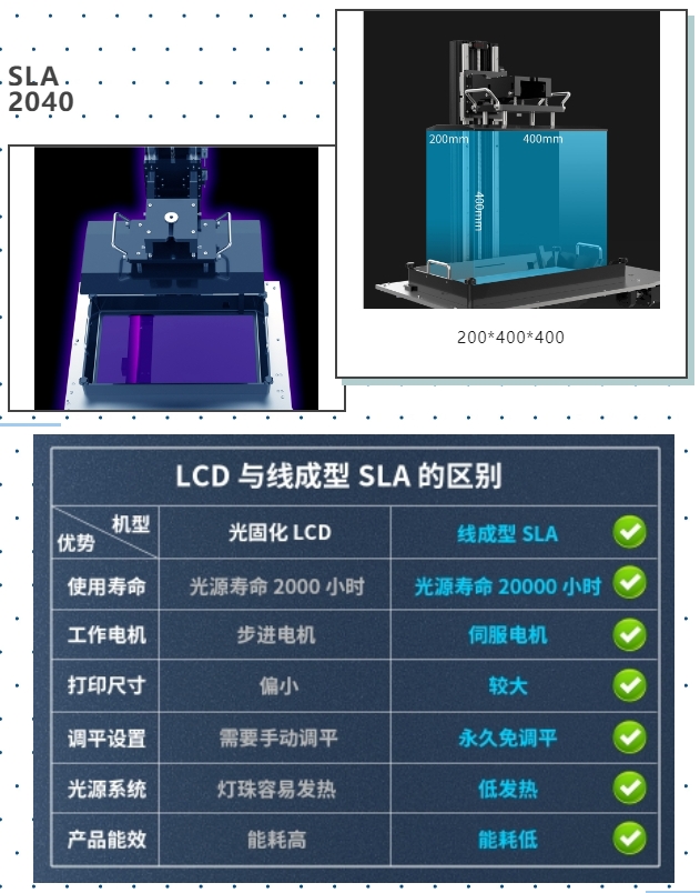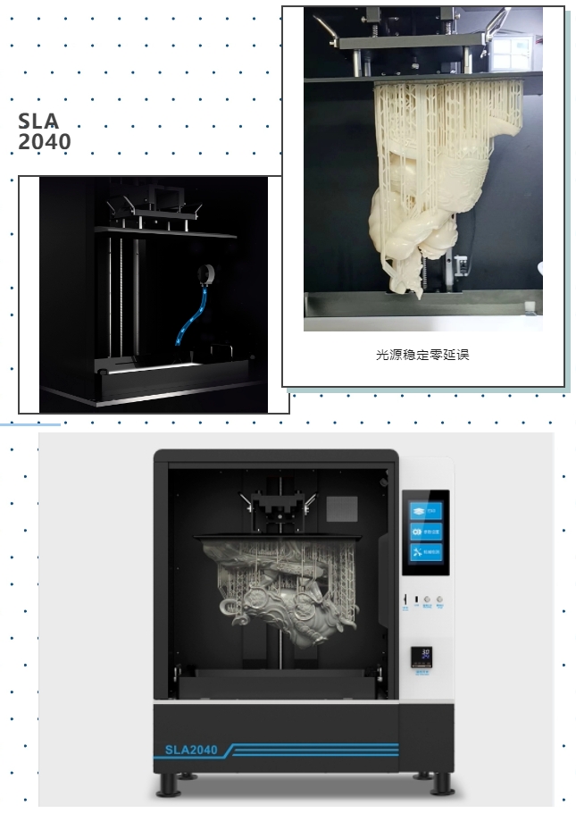 與同尺寸SLA線(xiàn)成型3D打印機(jī)相比,2040采用專(zhuān)業(yè)團(tuán)隊(duì)研發(fā)的大尺寸光機(jī),光源穩(wěn)定,接觸樹(shù)脂零延誤,光源掃描范圍可立即固化。