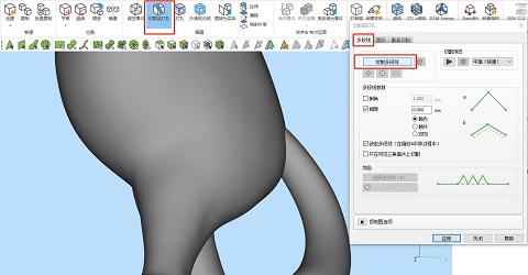 ③在功能頁上,可選擇設置倒角,即將尖銳的切割角去銳化,也設置間隙,以方便后期拼合。另外有一個比較重要的功能,即“鎖定多段線”,由于模型和切割線并不是保持不變相對位置,而是可調整的,所以這個的功能的開啟和關閉能改變不同的切割線固定方式,以方便調整模型角度切割。