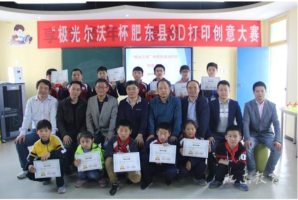 極光爾沃教育負(fù)責(zé)人和肥東縣領(lǐng)導(dǎo)、獲獎老師及其學(xué)生合影留戀