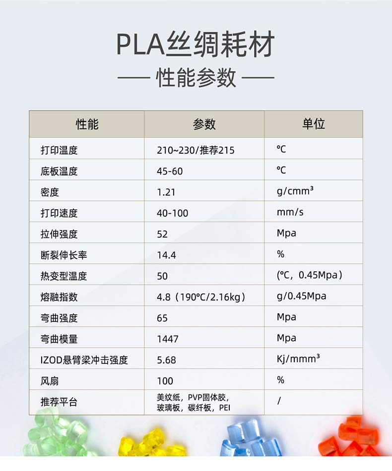 打印溫度:210~230/推薦215密度:1.21g/cmm3